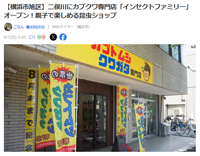 【横浜市旭区】二俣川にカブクワ専門店「インセクトファミリー」オープン!親子で楽しめる昆虫ショップ(こなん) – エキスパート – Yahoo!ニュース